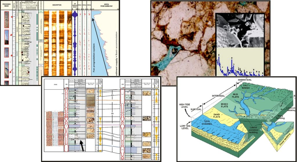 Integration of Core with Bore Hole Image Logs, facies identification, and fracture modeling. Predication of uncored intervals.